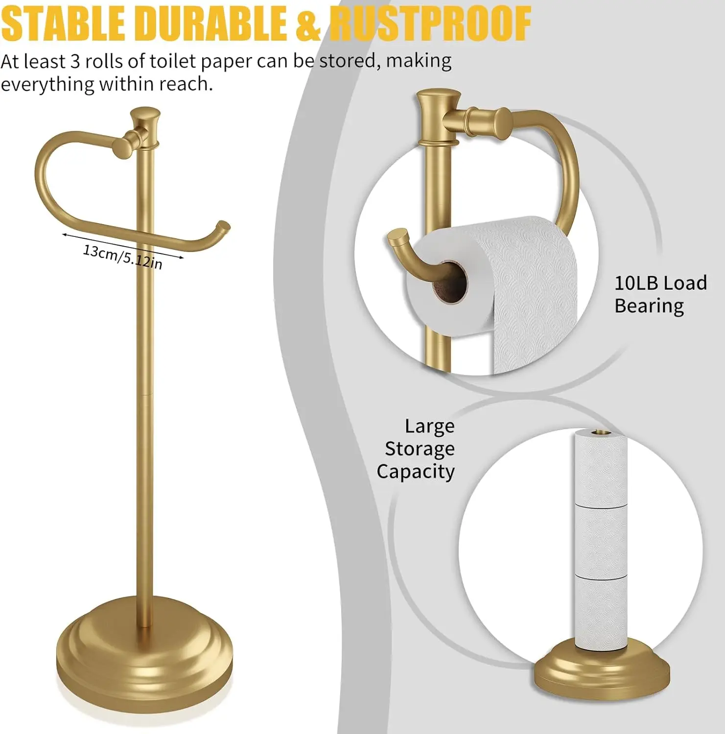 The stand-alone design eliminates the need for wall mounting, allowing flexible placement anywhere in your bathroom. Extra storage space accommodates multiple toilet paper rolls, reducing trips to the cabinet while keeping your bathroom tidy.