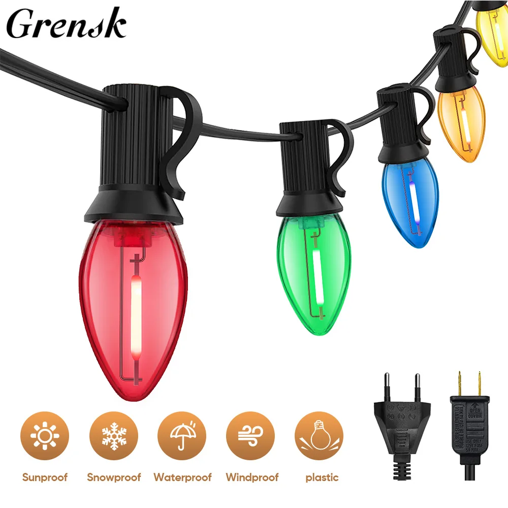 Bring festive cheer to any occasion with these C7 Christmas Light Strings. Featuring colorful RGB shatterproof bulbs, these lights provide bright, uniform illumination for gardens, patios, parties, and holiday displays. Designed with durability and safety in mind, the waterproof string garland withstands outdoor conditions, ensuring vibrant decorations year after year.