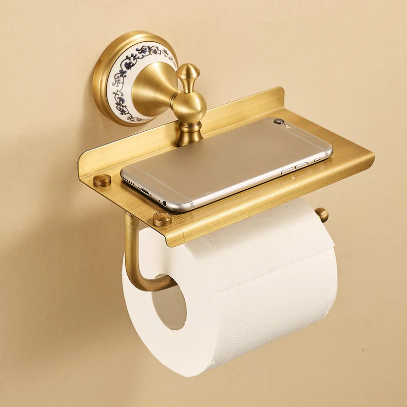 Enhance your bathroom with the Copper Toilet Paper Holder, featuring a luxurious antique brass finish and a practical built-in phone shelf. Designed for both style and functionality, this wall-mounted holder combines durable copper construction with elegant brushed gold and antique bronze accents, making it a perfect addition to modern, vintage, or classic bathroom interiors.