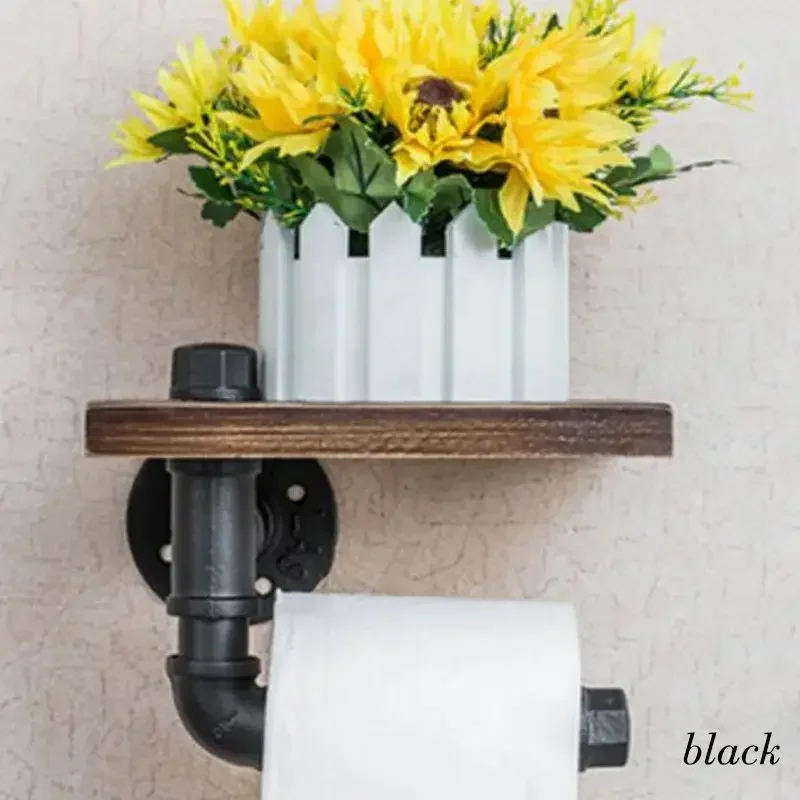 Crafted from high-quality iron pipes and a solid wooden shelf, this holder is built to last. The robust design ensures it remains securely mounted on walls, supporting daily use in both home and commercial settings. The finish resists rust and wear, keeping the industrial look clean and stylish over time.