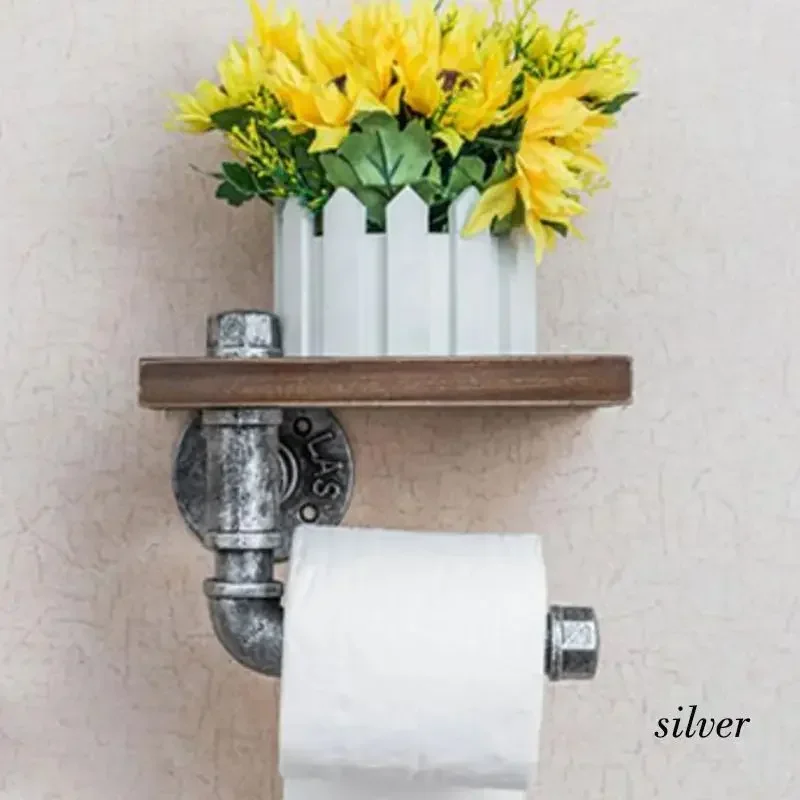 Its urban-industrial aesthetic makes it perfect for modern apartments, restaurants, cafes, or home bathrooms. The wooden shelf provides extra storage for small items like phones, wipes, or decor accessories, while the iron pipe roller securely holds standard toilet paper rolls.
