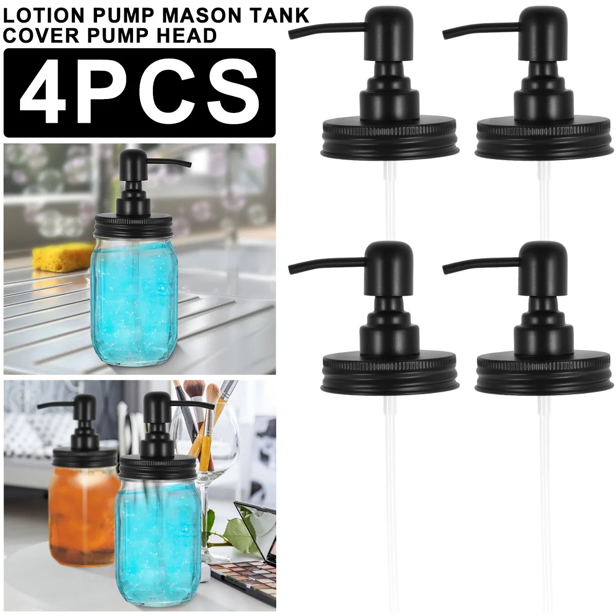 Upgrade your kitchen or bathroom with this Mason Jar Soap Dispenser Lid set. Designed to fit most standard mason jars, these 4 stainless steel pump lids allow you to transform jars into stylish and functional soap or lotion dispensers. Ideal for liquid hand soap, body lotion, or homemade cleaning solutions, they combine practicality with rustic charm.