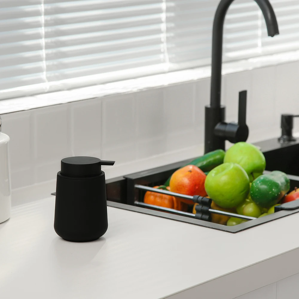 Upgrade your handwashing experience with this Plastic Soap Dispenser, designed for modern bathrooms and kitchens. Its sleek matte black finish adds a minimalist, contemporary touch to your countertop while providing a functional and hygienic solution for hand soap.