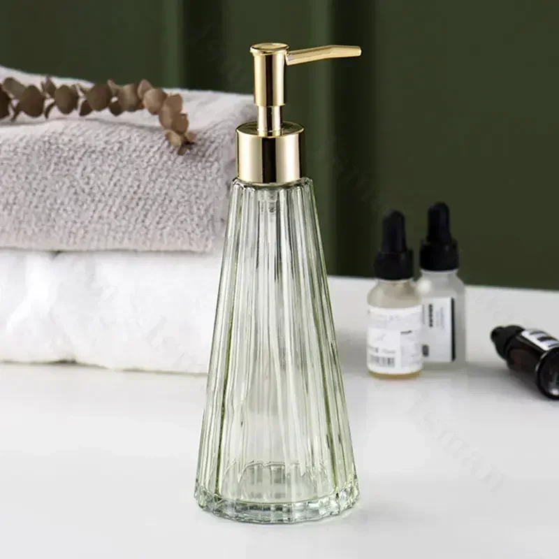 The dispenser is crafted from premium glass with a textured, striped relief pattern. This enhances grip and adds a sophisticated retro aesthetic. The sturdy glass construction resists wear and maintains clarity over time, keeping your bathroom looking stylish and polished.